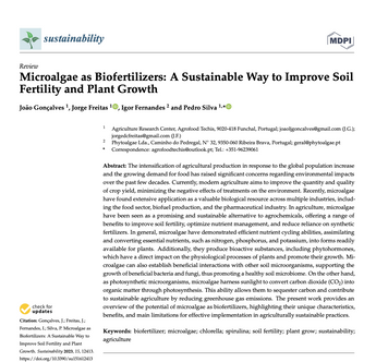 Microalgae are single-celled eukaryotic microbes that have been shown to assist in nutrient cycling within plants, working to make macronutrients readily available for plant utilization. Assimilation of nutrients isn't the only use for microalgae-based biofertilizers; they also function to release organic compounds into the soil, improving the existing bacterial microbiome of root systems (Fernandes 2023). When coupled with the bacterial microbiome of the rhizosphere, microalgae stimulate soil fertility and plant growth by encouraging microbial activity (Ajeng 2024). This successfully adds to the biomass of the soil, increasing its ability to hold water and improving crop yield and quality (Fernandes 2023). Biofertilizer containing microalgae has also been proven to mitigate the impact of climate change through sequestration of agricultural carbon dioxide emissions through photosynthesis (Cao 2023).